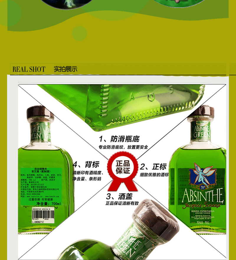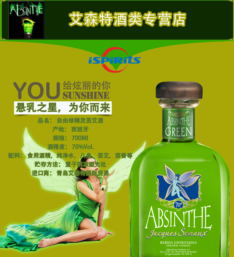 原瓶进口西班牙自由绿精灵苦艾酒700ml