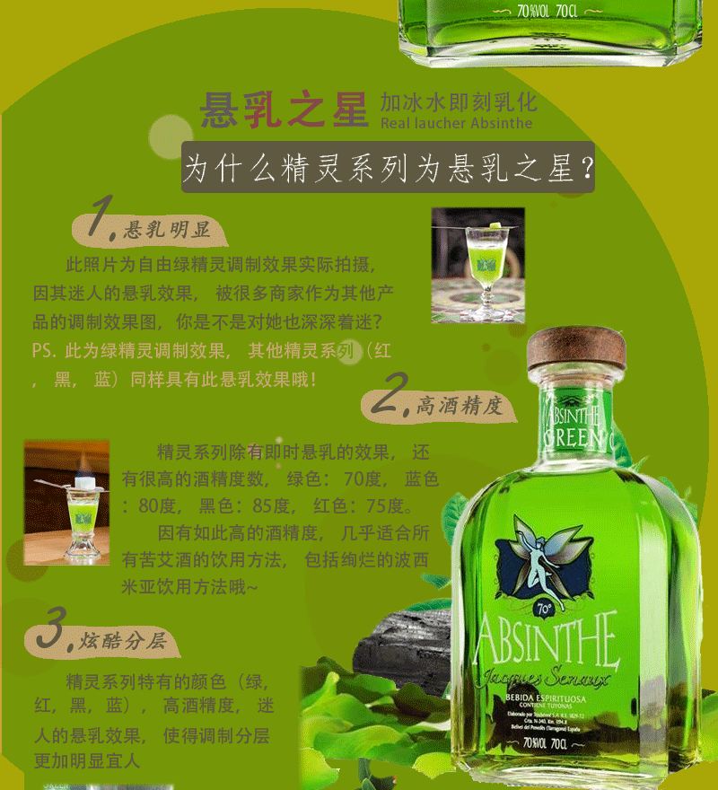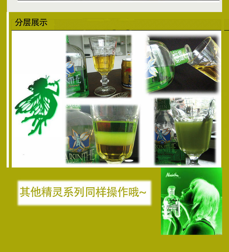 颜色:自由绿精灵 重量:700ml 长度:70% Vol. 产品描述:悬乳效果非常棒的苦艾酒, 产自西班牙, 无论口感, 调制效果都是恰到好处, 性价比高!...
